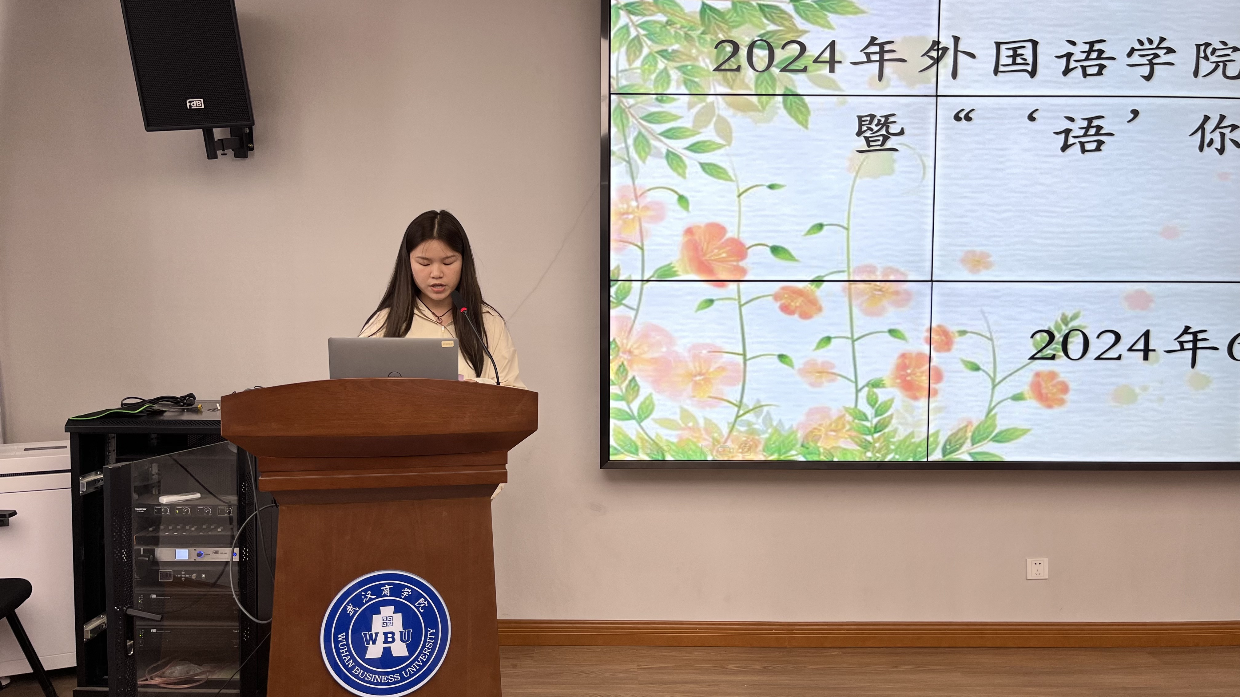 随后,旅游日语专业教师代表王思璇老师上台发言,言语间满是对学生的骄傲与不舍。王老师对即将步入社会的学生们提出了殷切期望与实用建议,鼓励他们在未来的职业生涯中保持学习的热情,将所学知识应用于实践,为我们的祖国做出贡献。该班辅导员陈迎娟老师也送上了美好的祝愿。