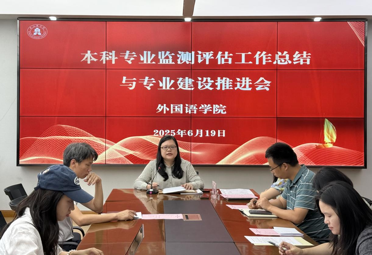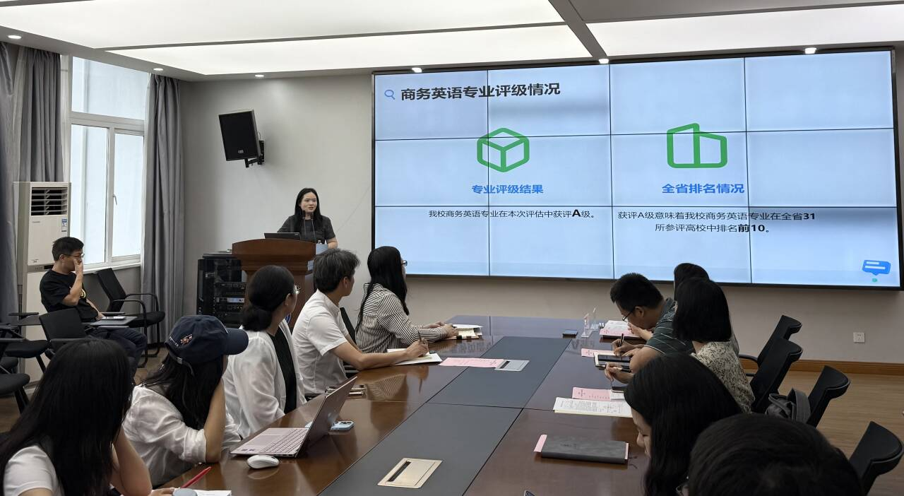 会上,忻副院长首先传达学校本科专业监测评估总结会议精神,解读学校“优化五育体系、强化师资建设、提升专业系统性思维、深化OBE理念”等下一步工作重点。同时,忻副院长对学院评估工作进行总结,商务英语专业获评A等级,跻身全省前十,展现了学院在办学历史、师资规模及校企合作方面的优势;翻译专业获评B等级,仍有提升空间。忻副院长表示,学院在师资结构、专业建设及资源整合等方面存在不足,需进一步优化。